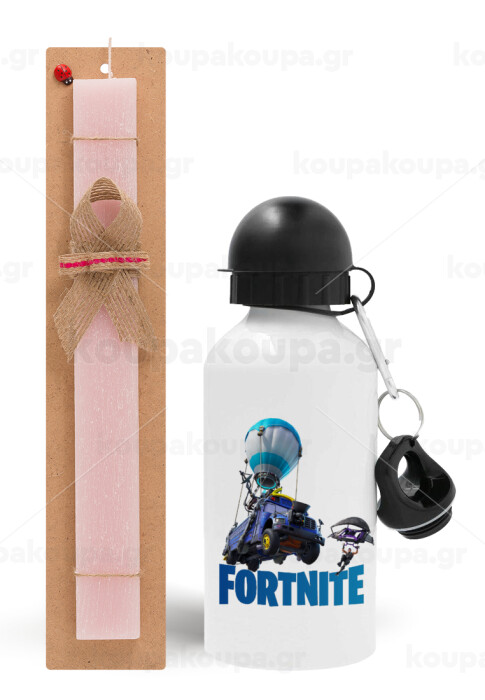 Fortnite Bus, Easter Set, metallic aluminum bottle (500ml) & aromatic flat Easter candle (30cm) (PINK)
