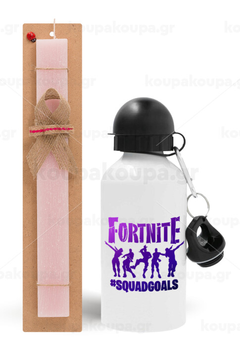 Fortnite #squadgoals, Easter Set, metallic aluminum bottle (500ml) & aromatic flat Easter candle (30cm) (PINK)