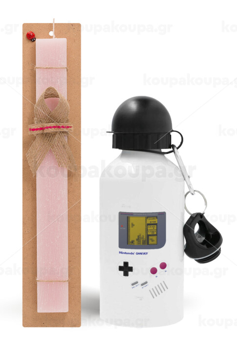 Gameboy, Easter Set, metallic aluminum bottle (500ml) & aromatic flat Easter candle (30cm) (PINK)