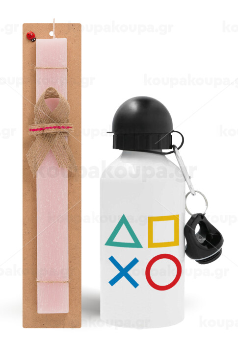 Gaming Symbols, Easter Set, metallic aluminum bottle (500ml) & aromatic flat Easter candle (30cm) (PINK)