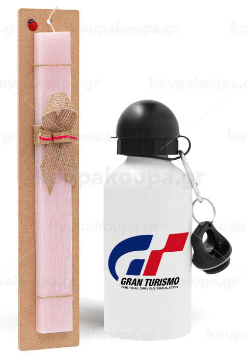 gran turismo, Easter Set, metallic aluminum bottle (500ml) & aromatic flat Easter candle (30cm) (PINK)