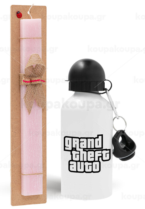 GTA (grand theft auto), Easter Set, metallic aluminum bottle (500ml) & aromatic flat Easter candle (30cm) (PINK)