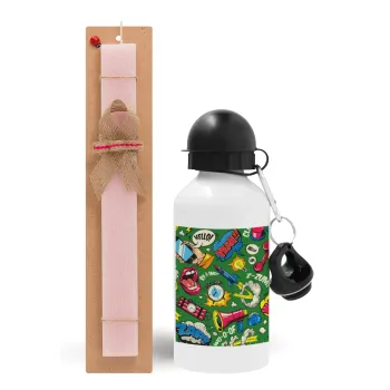 Pop art colorful seamless, Easter Set, metallic aluminum bottle (500ml) & aromatic flat Easter candle (30cm) (PINK)