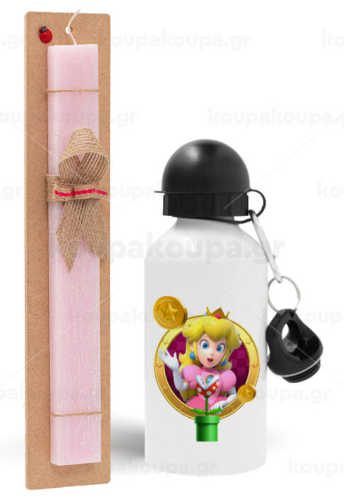 Princess Peach Toadstool, Easter Set, metallic aluminum bottle (500ml) & aromatic flat Easter candle (30cm) (PINK)