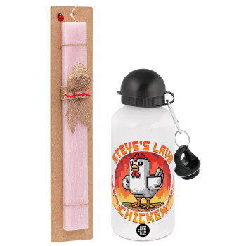 Steve's Lava Chicken, Easter Set, metallic aluminum bottle (500ml) & aromatic flat Easter candle (30cm) (PINK)