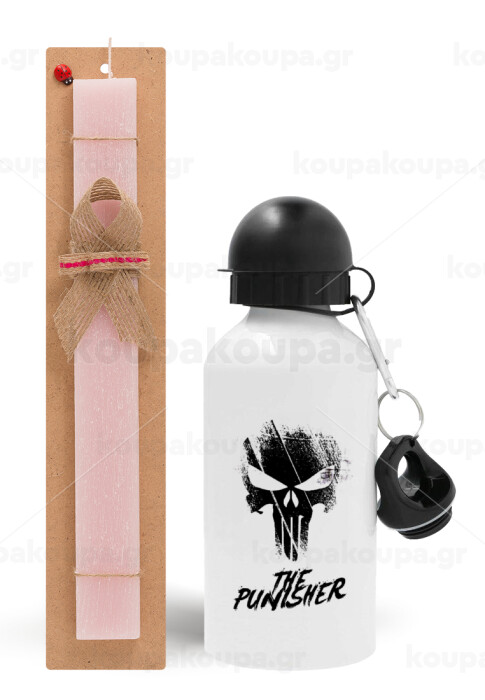 The punisher, Easter Set, metallic aluminum bottle (500ml) & aromatic flat Easter candle (30cm) (PINK)