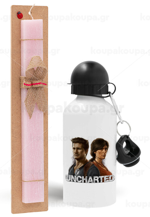 Uncharted, Easter Set, metallic aluminum bottle (500ml) & aromatic flat Easter candle (30cm) (PINK)