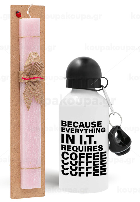 Because everything in I.T. requires coffee, Easter Set, metallic aluminum bottle (500ml) & aromatic flat Easter candle (30cm) (PINK)