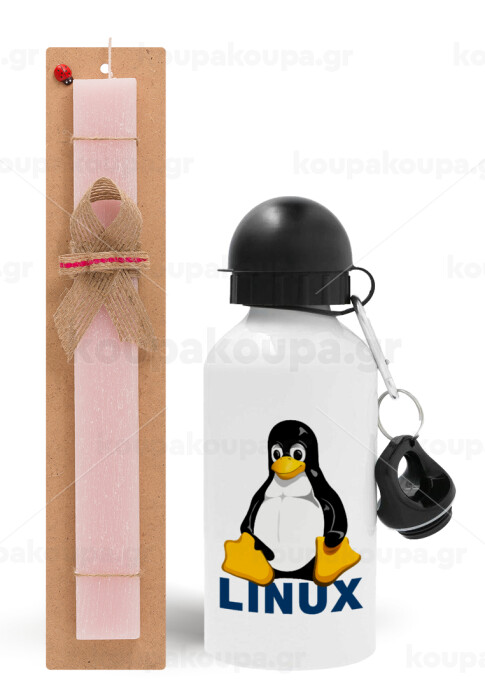 Linux, Easter Set, metallic aluminum bottle (500ml) & aromatic flat Easter candle (30cm) (PINK)