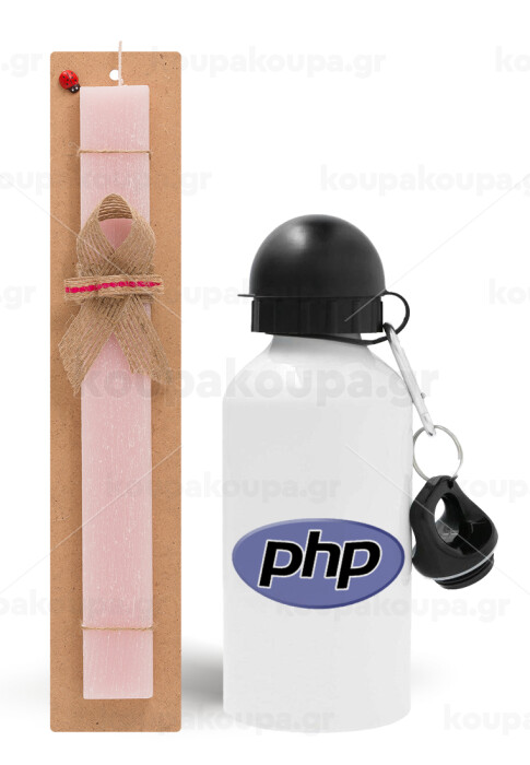 PHP, Easter Set, metallic aluminum bottle (500ml) & aromatic flat Easter candle (30cm) (PINK)