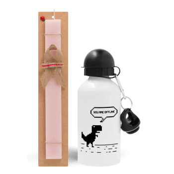 You are offline dinosaur, Easter Set, metallic aluminum bottle (500ml) & aromatic flat Easter candle (30cm) (PINK)