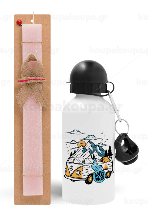 Life is a trip, Easter Set, metallic aluminum bottle (500ml) & aromatic flat Easter candle (30cm) (PINK)