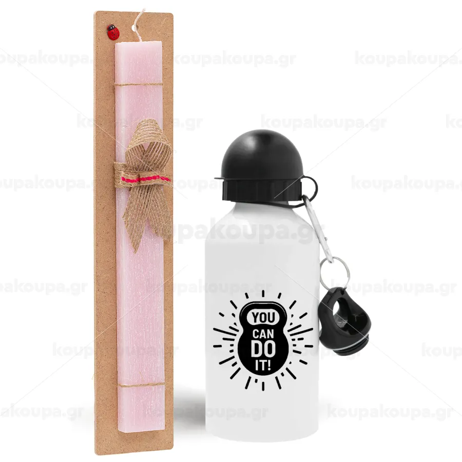 You can do it, Easter Set, metallic aluminum bottle (500ml) & aromatic flat Easter candle (30cm) (PINK)