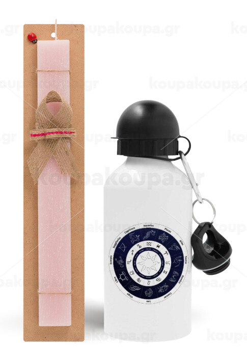 Ζωδιακός κύκλος, Easter Set, metallic aluminum bottle (500ml) & aromatic flat Easter candle (30cm) (PINK)