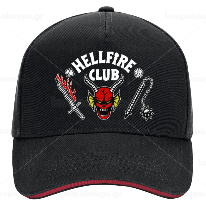 Hellfire CLub, Stranger Things, DRILL Adult Ultimate Hat BLACK/RED, (100% COTTON, ADULT, UNISEX, ONE SIZE)