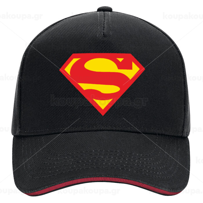 Superman, DRILL Adult Ultimate Hat BLACK/RED, (100% COTTON, ADULT, UNISEX, ONE SIZE)