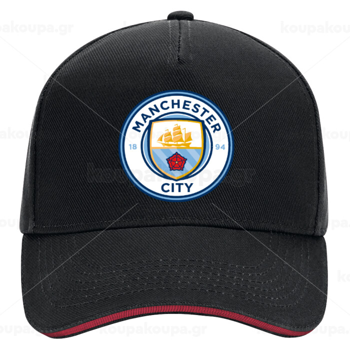 Manchester City FC , DRILL Adult Ultimate Hat BLACK/RED, (100% COTTON, ADULT, UNISEX, ONE SIZE)