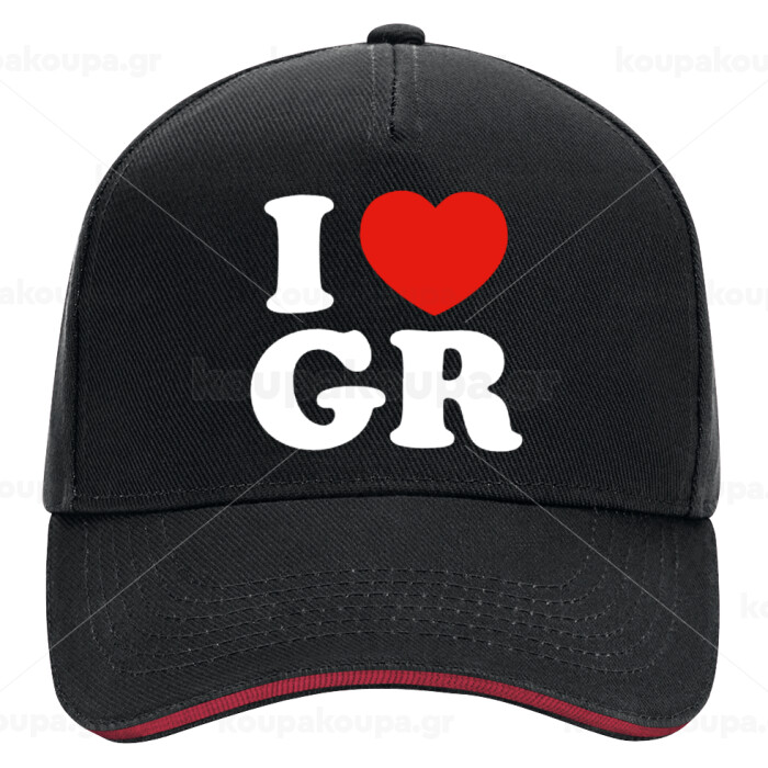 I Love GR, DRILL Adult Ultimate Hat BLACK/RED, (100% COTTON, ADULT, UNISEX, ONE SIZE)