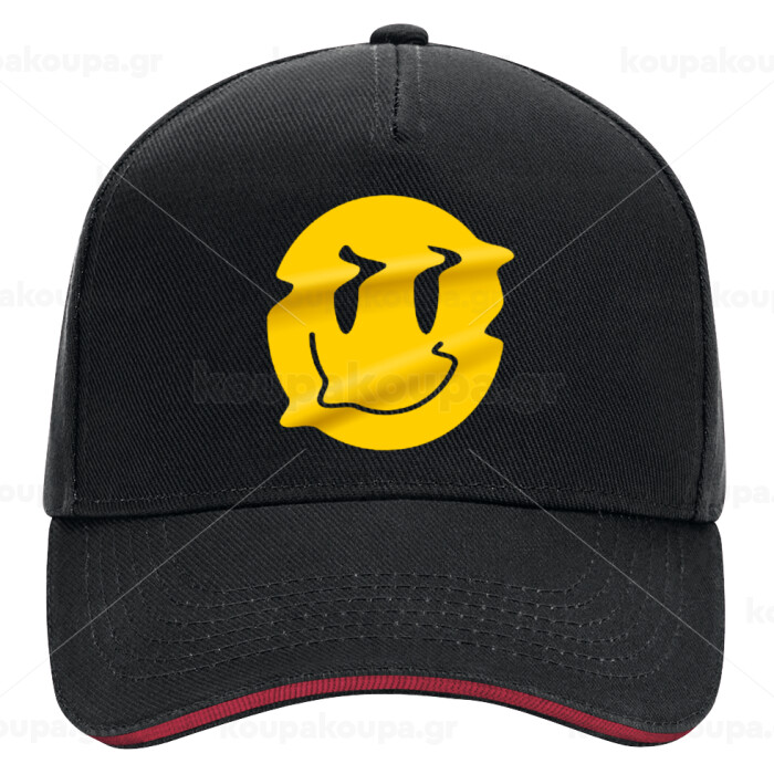 Smile avatar distrorted, DRILL Adult Ultimate Hat BLACK/RED, (100% COTTON, ADULT, UNISEX, ONE SIZE)