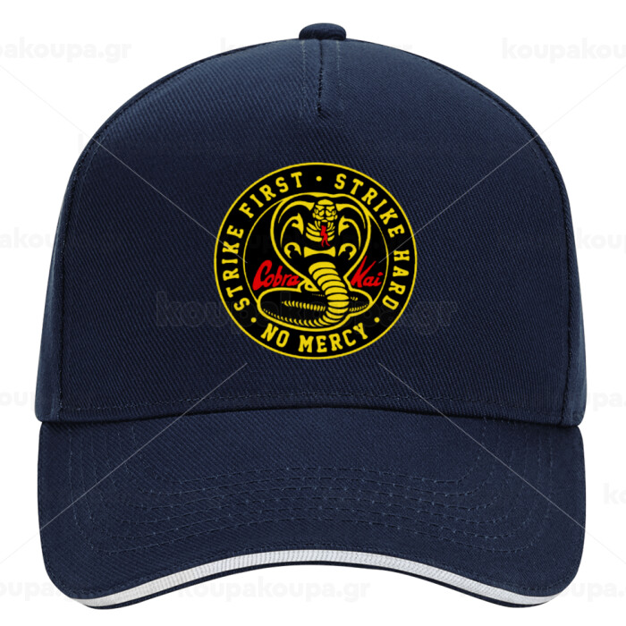 cobra kai strike first dojo, DRILL Adult Ultimate Hat BLUE/WHITE, (100% COTTON, ADULT, UNISEX, ONE SIZE)