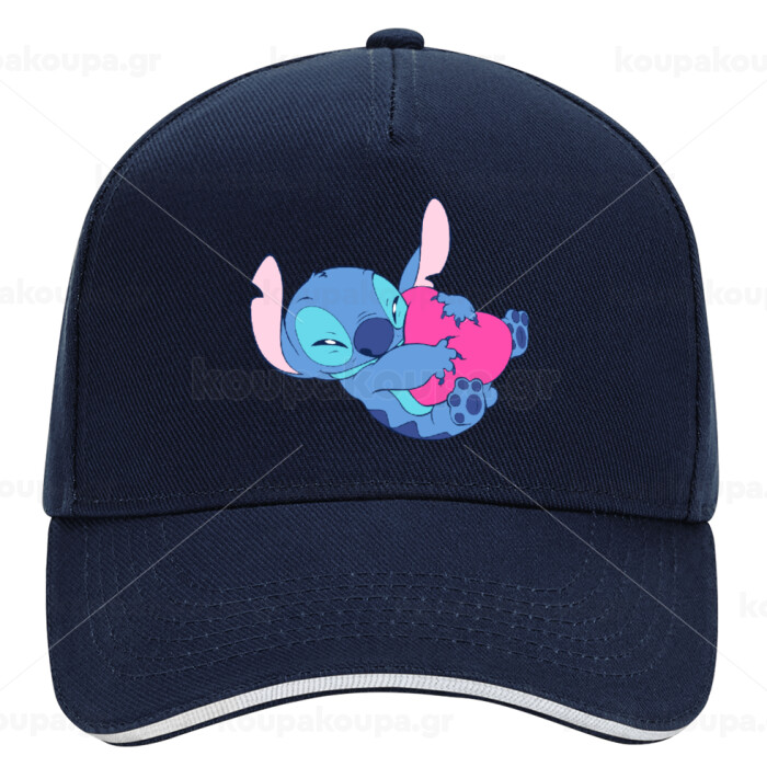 Lilo & Stitch hugs and hearts, DRILL Adult Ultimate Hat BLUE/WHITE, (100% COTTON, ADULT, UNISEX, ONE SIZE)