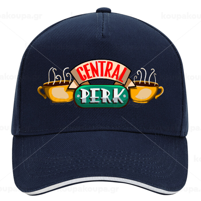 Central perk, DRILL Adult Ultimate Hat BLUE/WHITE, (100% COTTON, ADULT, UNISEX, ONE SIZE)