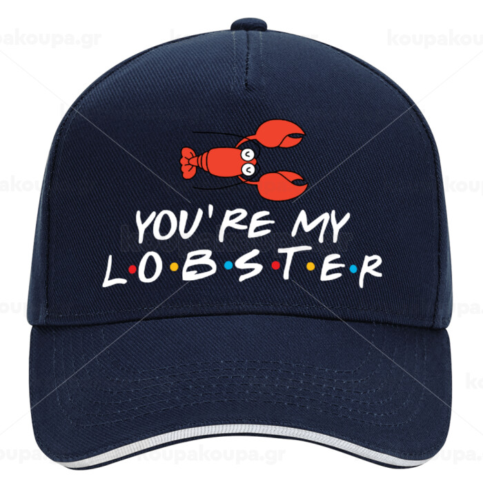 Friends you're my lobster, DRILL Adult Ultimate Hat BLUE/WHITE, (100% COTTON, ADULT, UNISEX, ONE SIZE)