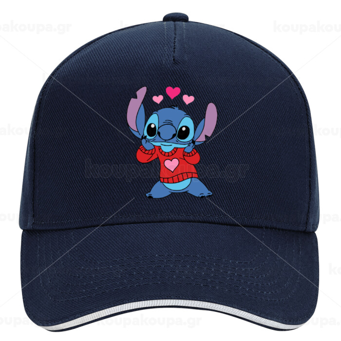 Stitch heart, DRILL Adult Ultimate Hat BLUE/WHITE, (100% COTTON, ADULT, UNISEX, ONE SIZE)