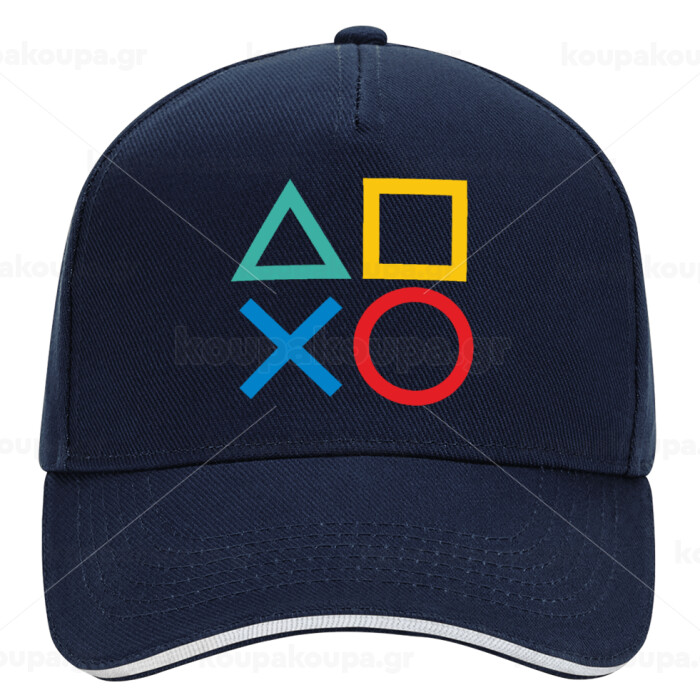 Gaming Symbols, DRILL Adult Ultimate Hat BLUE/WHITE, (100% COTTON, ADULT, UNISEX, ONE SIZE)