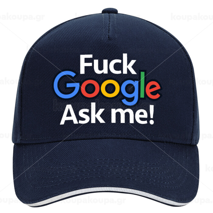 Fuck Google, Ask me!, DRILL Adult Ultimate Hat BLUE/WHITE, (100% COTTON, ADULT, UNISEX, ONE SIZE)