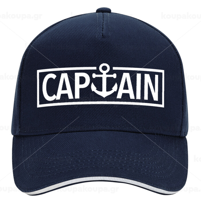 CAPTAIN, DRILL Adult Ultimate Hat BLUE/WHITE, (100% COTTON, ADULT, UNISEX, ONE SIZE)