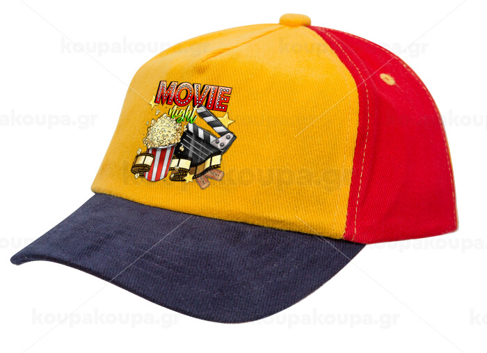 Movie night, Children's Baseball Cap, 100% Cotton Drill, Yellow/Blue/Red (COTTON, CHILDREN'S, ONE SIZE)