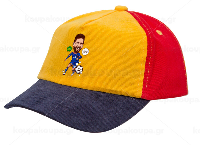 Lionel Messi drawing, Children's Baseball Cap, 100% Cotton Drill, Yellow/Blue/Red (COTTON, CHILDREN'S, ONE SIZE)