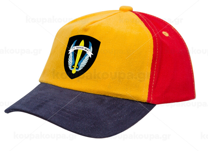 Έμβλημα Μονάδων Καταδρομών Ο Τολμων Νικα - Λοκ, Children's Baseball Cap, 100% Cotton Drill, Yellow/Blue/Red (COTTON, CHILDREN'S, ONE SIZE)