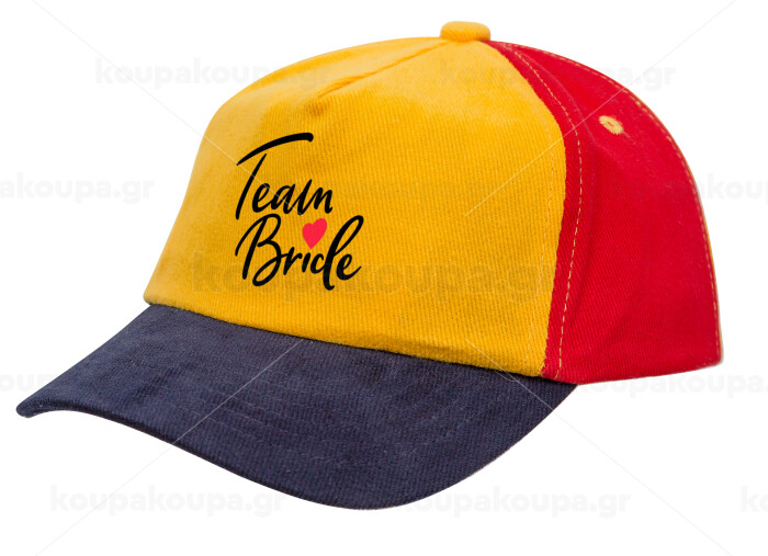 Team Bride red heart, Children's Baseball Cap, 100% Cotton Drill, Yellow/Blue/Red (COTTON, CHILDREN'S, ONE SIZE)