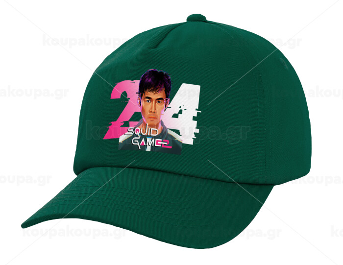 Squid game 456 Gi-Hun, Twill Children's Cap, DARK GREEN (100% COTTON, CHILDREN, UNISEX)