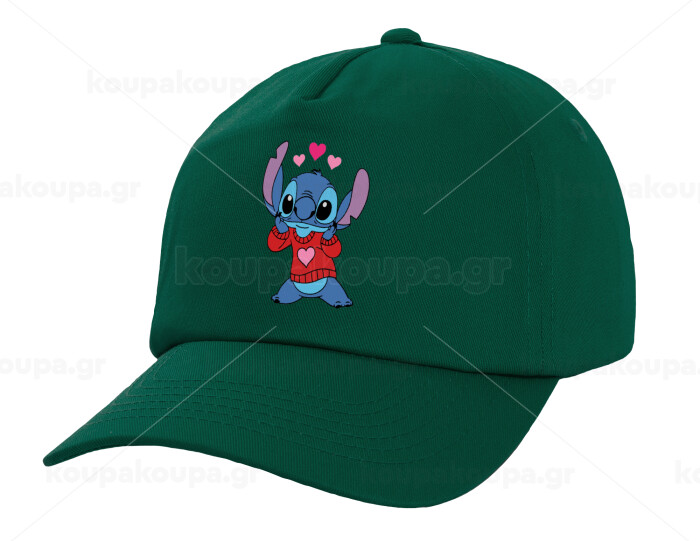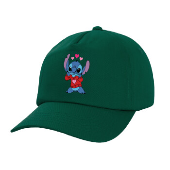 Stitch heart, Twill Children's Cap, DARK GREEN (100% COTTON, CHILDREN, UNISEX)