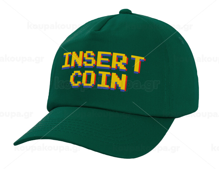 Insert coin!!!, Twill Children's Cap, DARK GREEN (100% COTTON, CHILDREN, UNISEX)