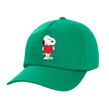 Snoopy takemy heart, Children's Baseball Cap, 100% Cotton Twill, Green (COTTON, CHILDREN'S, UNISEX, ONE SIZE)