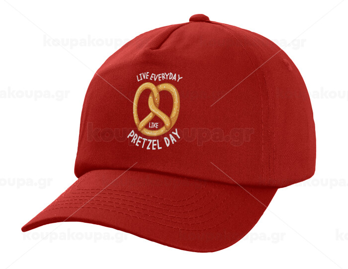 The office, Live every day like pretzel day, Children's Baseball Cap, 100% Cotton Twill, Red (COTTON, CHILDREN'S, UNISEX, ONE SIZE)