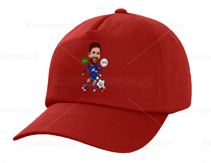 Lionel Messi drawing, Children's Baseball Cap, 100% Cotton Twill, Red (COTTON, CHILDREN'S, UNISEX, ONE SIZE)