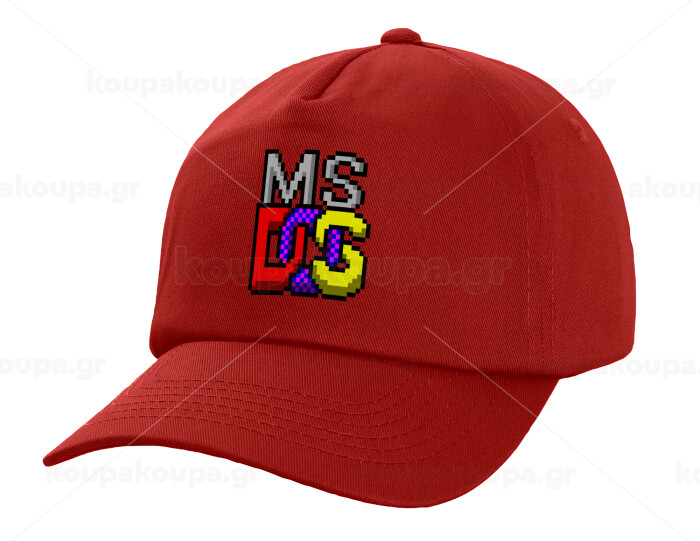 MsDos, Children's Baseball Cap, 100% Cotton Twill, Red (COTTON, CHILDREN'S, UNISEX, ONE SIZE)