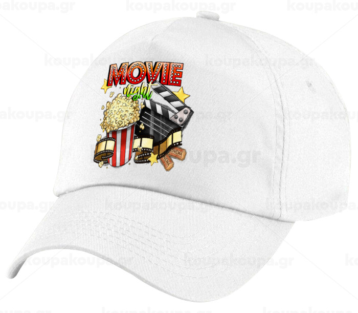 Movie night, Children's Baseball Cap, 100% Cotton Twill, White (COTTON, CHILDREN'S, UNISEX, ONE SIZE)