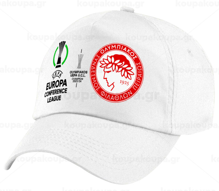 Olympiacos UEFA Europa Conference League Champion 2023/24, Children's Baseball Cap, 100% Cotton Twill, White (COTTON, CHILDREN'S, UNISEX, ONE SIZE)