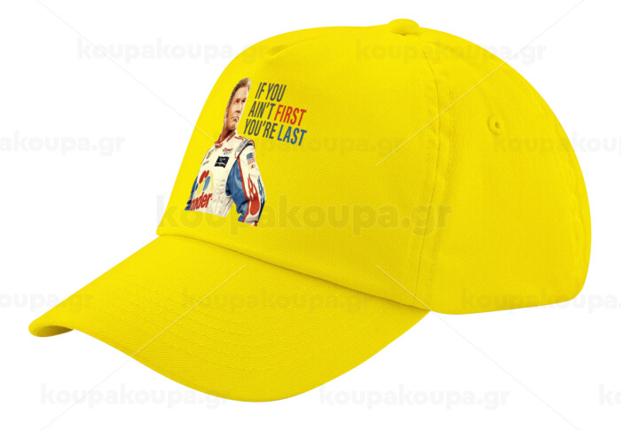 If You Ain't First You're Last Ricky Bobby, Talladega Nights, Child's Baseball Cap, 100% Cotton Twill, Yellow (COTTON, CHILD, UNISEX, ONE SIZE)