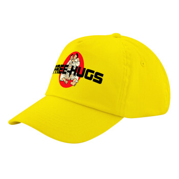 JUDO free hugs, Child's Baseball Cap, 100% Cotton Twill, Yellow (COTTON, CHILD, UNISEX, ONE SIZE)
