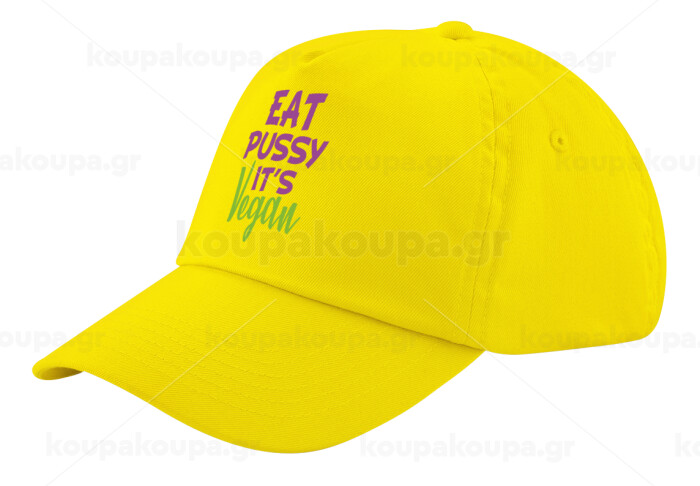 EAT pussy it's vegan, Child's Baseball Cap, 100% Cotton Twill, Yellow (COTTON, CHILD, UNISEX, ONE SIZE)