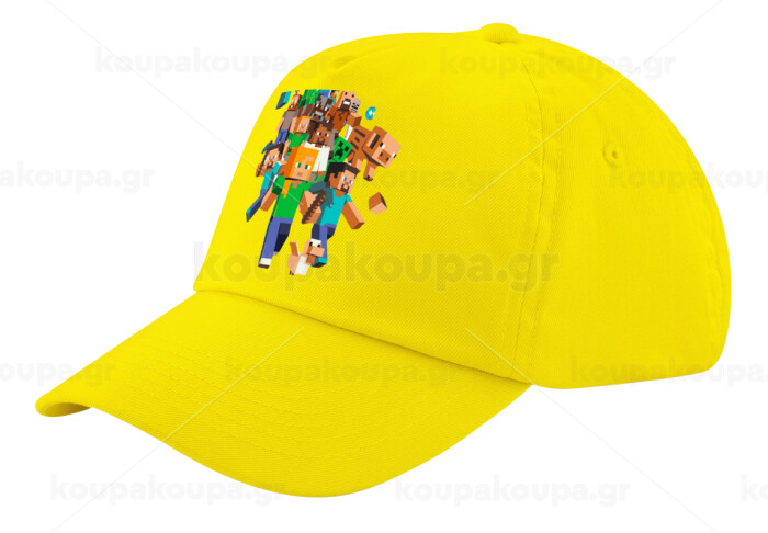 Minecraft adventure, Child's Baseball Cap, 100% Cotton Twill, Yellow (COTTON, CHILD, UNISEX, ONE SIZE)