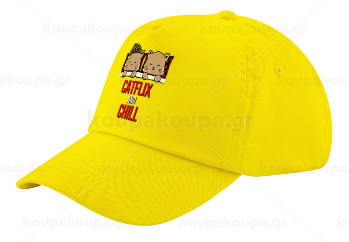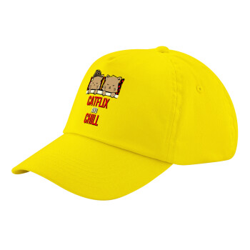 Catflix and Chill, Child's Baseball Cap, 100% Cotton Twill, Yellow (COTTON, CHILD, UNISEX, ONE SIZE)