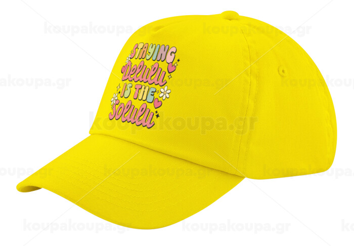 Delulu, Child's Baseball Cap, 100% Cotton Twill, Yellow (COTTON, CHILD, UNISEX, ONE SIZE)